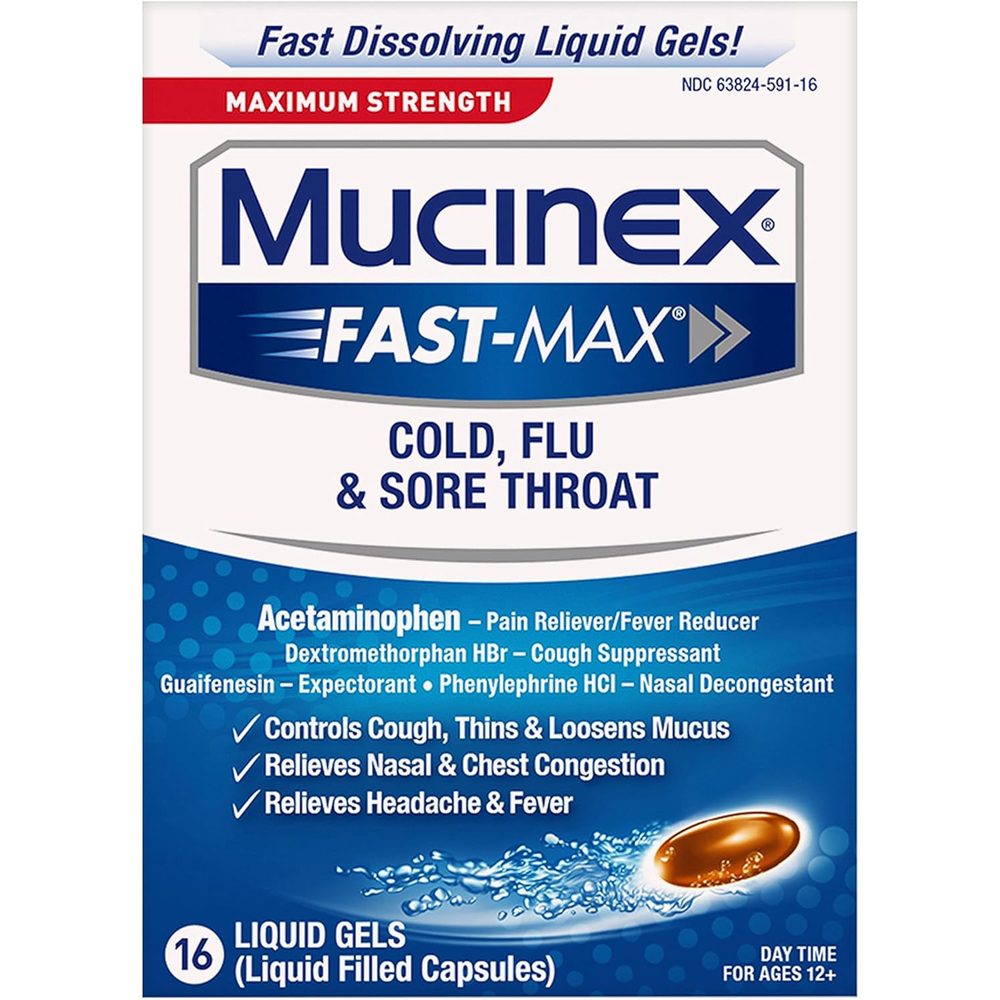 Mucinex Fast Max Cold Flu Sore Throat Liquid Gels 16 Ct The Online Drugstore C